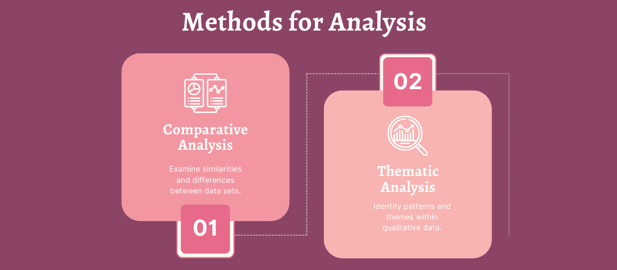 - Comparative and thematic analysis are effective methods, supported by tools like Excel and NVivo for quantitative and qualitative data, respectively.
