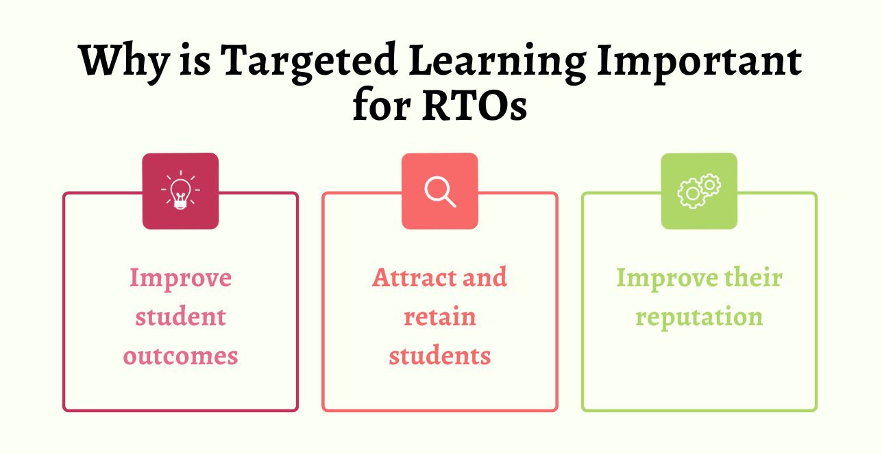 - Attract and retain students: Students are more likely to enrol in and complete training programs that are relevant to their interests and needs. Targeted learning can help RTOs to attract and retain students by offering programs that are tailored to the specific needs of different student groups.