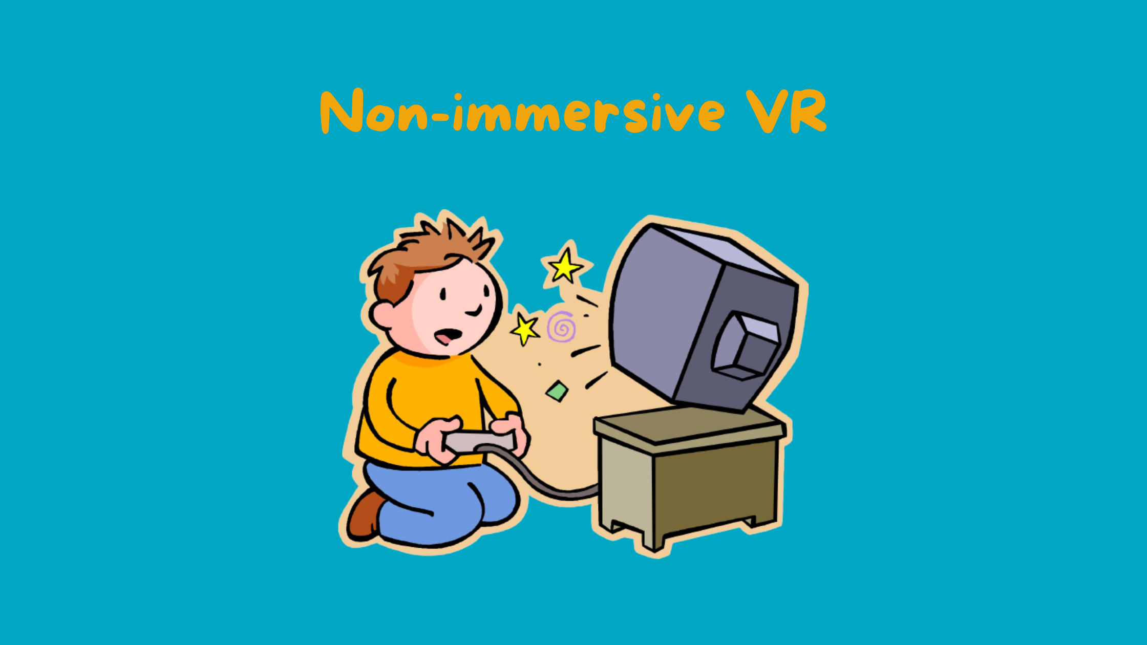 Non-immersive VR: This is the most common type of VR, and it’s probably what you think of when you hear the term. It’s the kind of VR you experience when you play a video game on a TV or PC monitor. You’re in control of the character, but you’re not actually part of the simulation.